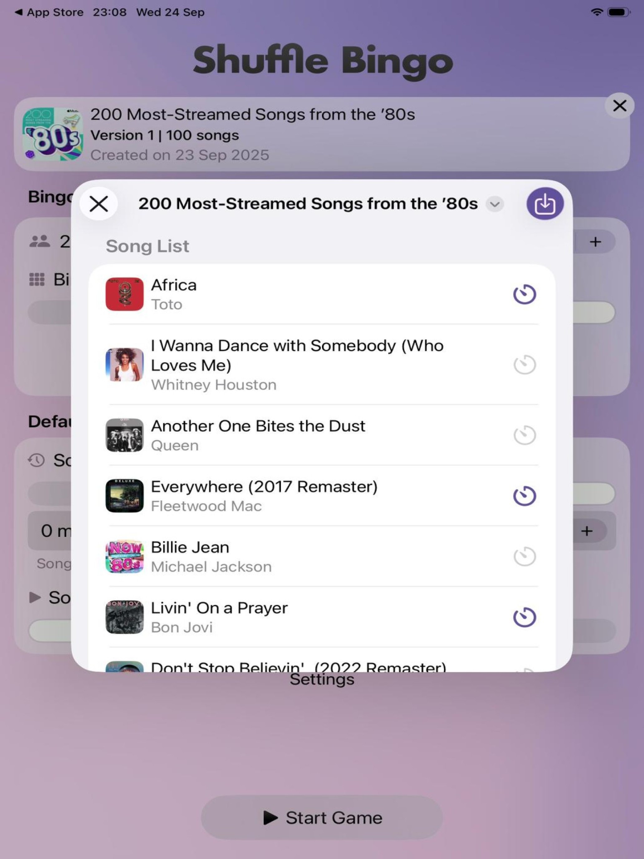 Shuffle Bingo has evolved into a music game centre for iPhones® and iPads® using your iTunes® music library or Apple Music® service.