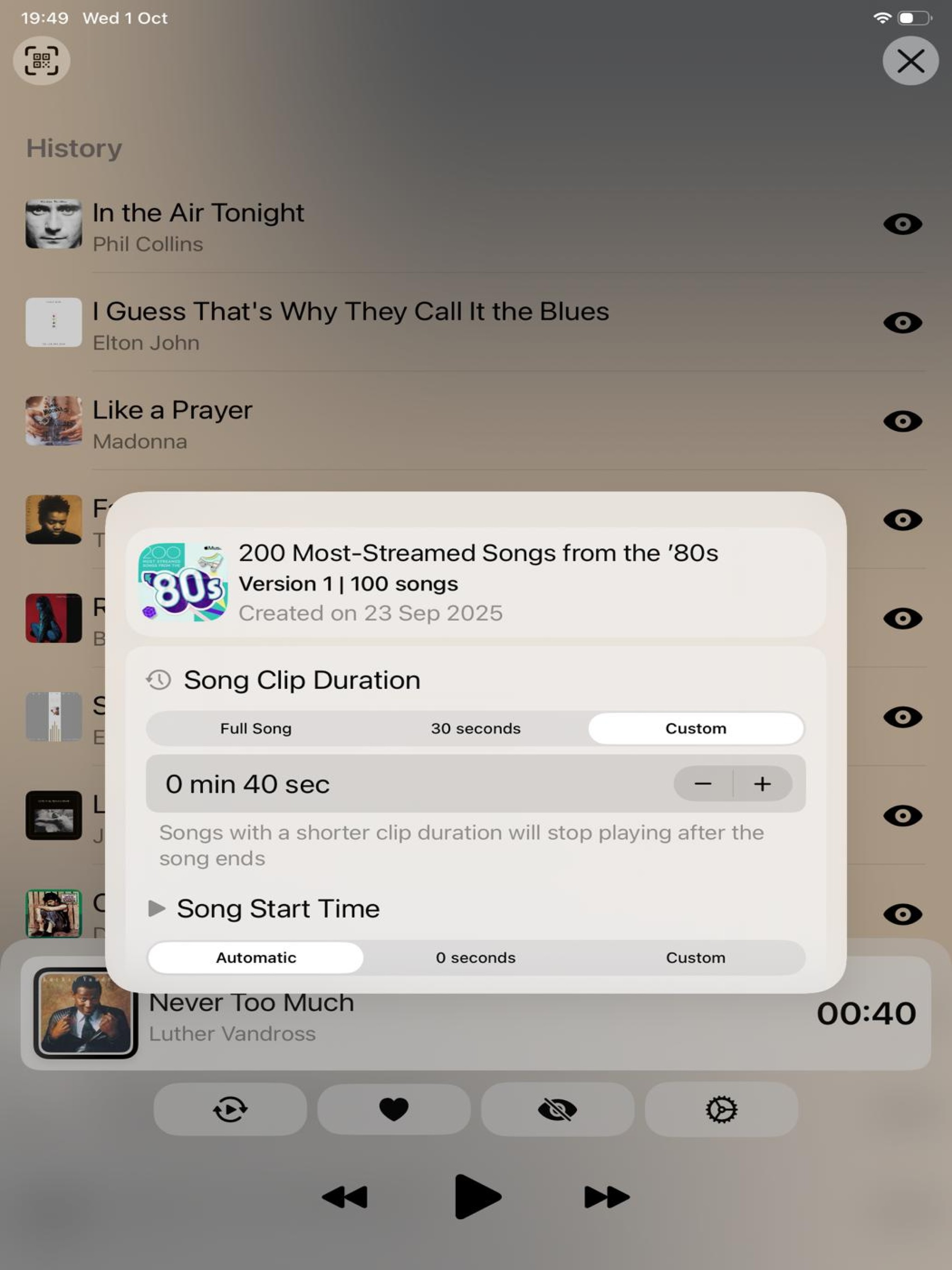 In the Name that Tune mode, song names and artists are obscured but can be revealed individually or generally as you wish.