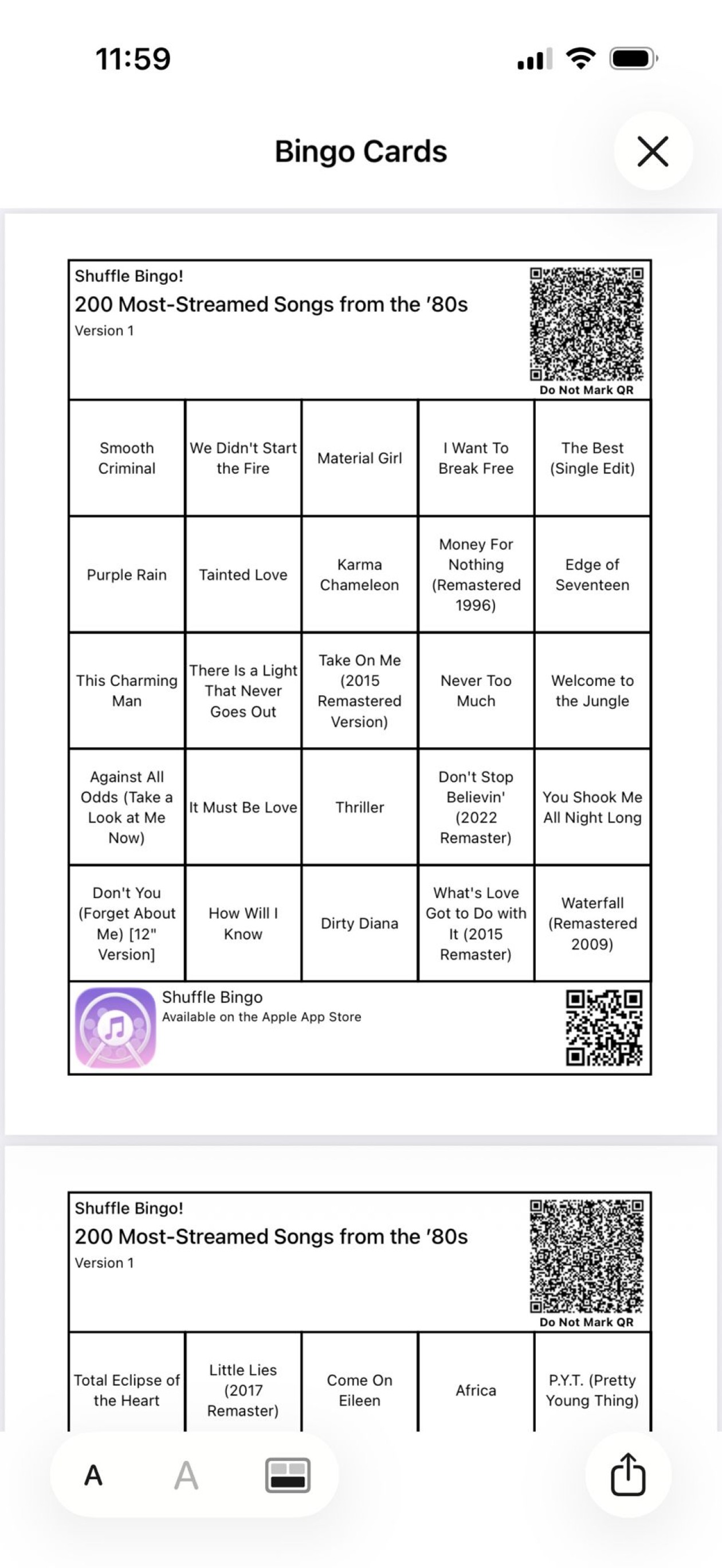 Shuffle Bingo has evolved into a music game centre for  iPhones® and iPads® using your iTunes® music library or Apple Music® service.